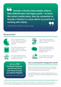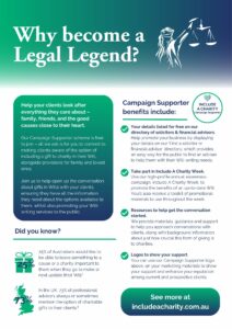 The Include a Charity campaign relies on the support of its campaign supporters, volunteers and partners. We also rely on the support of the legal profession to assist their clients in leaving a charitable gift in their Will.